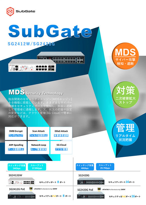 MDSは、SubGateは、自身を通過するパケットのヘッダ情報をもとに不正な振舞いをおこなうトラフィックを検知します。そのため、定義ファイルなどのような更新は必要ありません。