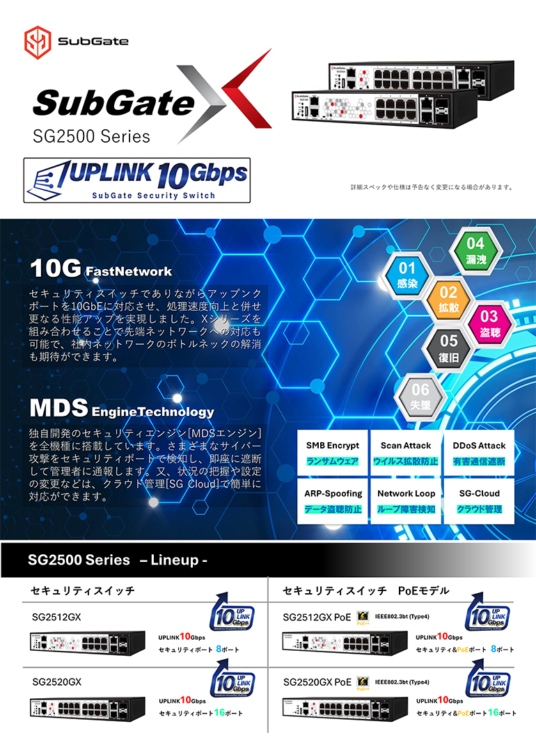 MDSは、SubGateは、自身を通過するパケットのヘッダ情報をもとに不正な振舞いをおこなうトラフィックを検知します。そのため、定義ファイルなどのような更新は必要ありません。