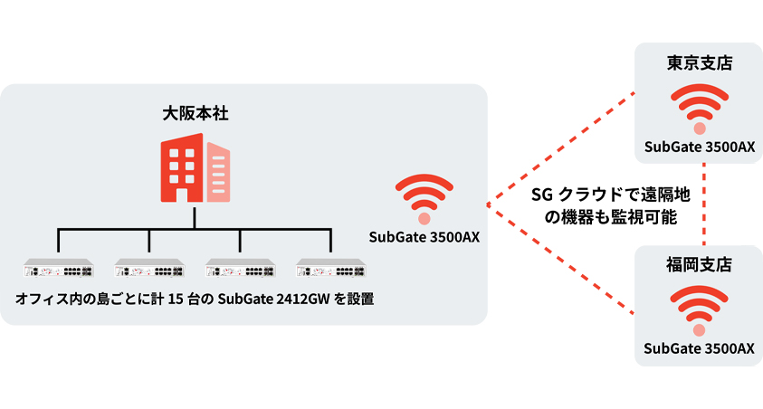 2021年にテクニカルサポートセンターでSubGate2412GWを導入した同社は、2024年の本社移転に合わせ、全15台の2412GWを本社オフィスの島ごとに配置。さらに翌年、本社及び東京支店・福岡支店の無線アクセスポイントをSubGate3500AXにリプレースしている。 技術本部 セキュリティソリューション部 テクニカルサポート課 課長の河邊 直樹 氏は、この大規模リプレースに至った経緯を次のように説明する。 「Wi-Fi 6 への対応に加え、特に東京と福岡の支店への導入では、クラウド上で遠隔地の機器を監視可能にするSGクラウドがリリースされたことも大きなポイントでした。さらに顧客サービスの観点から、サポートチーム内でSGクラウド運用に関する知見をいち早く蓄積する狙いもありました。実際に使ってみることで、より的確な判断が下せるようになりますからね」 振る舞い検知機能を備えたアクセスポイントであるSubGate3500AXへのリプレース効果はすでに現れていると河邊氏は続ける。「当社は来訪するお客様にもWiFi を開放していますが、リプレースから約1カ月が過ぎた頃、SGクラウドで東京支店のWiFi 運用状況を確認すると、お客様端末の不審な振る舞いを検知し、即座にアクセスをブロックしたというアラートメールが届きました。過検知の可能性も否めませんが、ゲストと分けているとはいえ、同じネットワーク内でのセキュリティリスクであった可能性を考えると、リプレース効果は極めて大きかったと受け止めています」 今後同社は、東京支店・福岡支店でL2スイッチのSubGate2400シリーズへ移行し、SubGateのセキュリティスイッチを全社に展開する予定だ。SubGate製品の今後の展望に関して徳松氏は大きな期待を寄せている。 「電話やメールだけで遠隔地の端末の状況を正確に把握することは困難です。そのためSGクラウドによる遠隔監視は、当社サポート部門のサービス品質向上に大きな役割を果たすと考えています。また、セキュリティ製品に特化したディストリビューターである当社にとっても、従業員教育をはじめとするセキュリティ対策は大きな課題の一つであり続けています。自社のネットワークセキュリティ強化という観点からも、SubGate製品にはこれからも注目していきたいと思います」